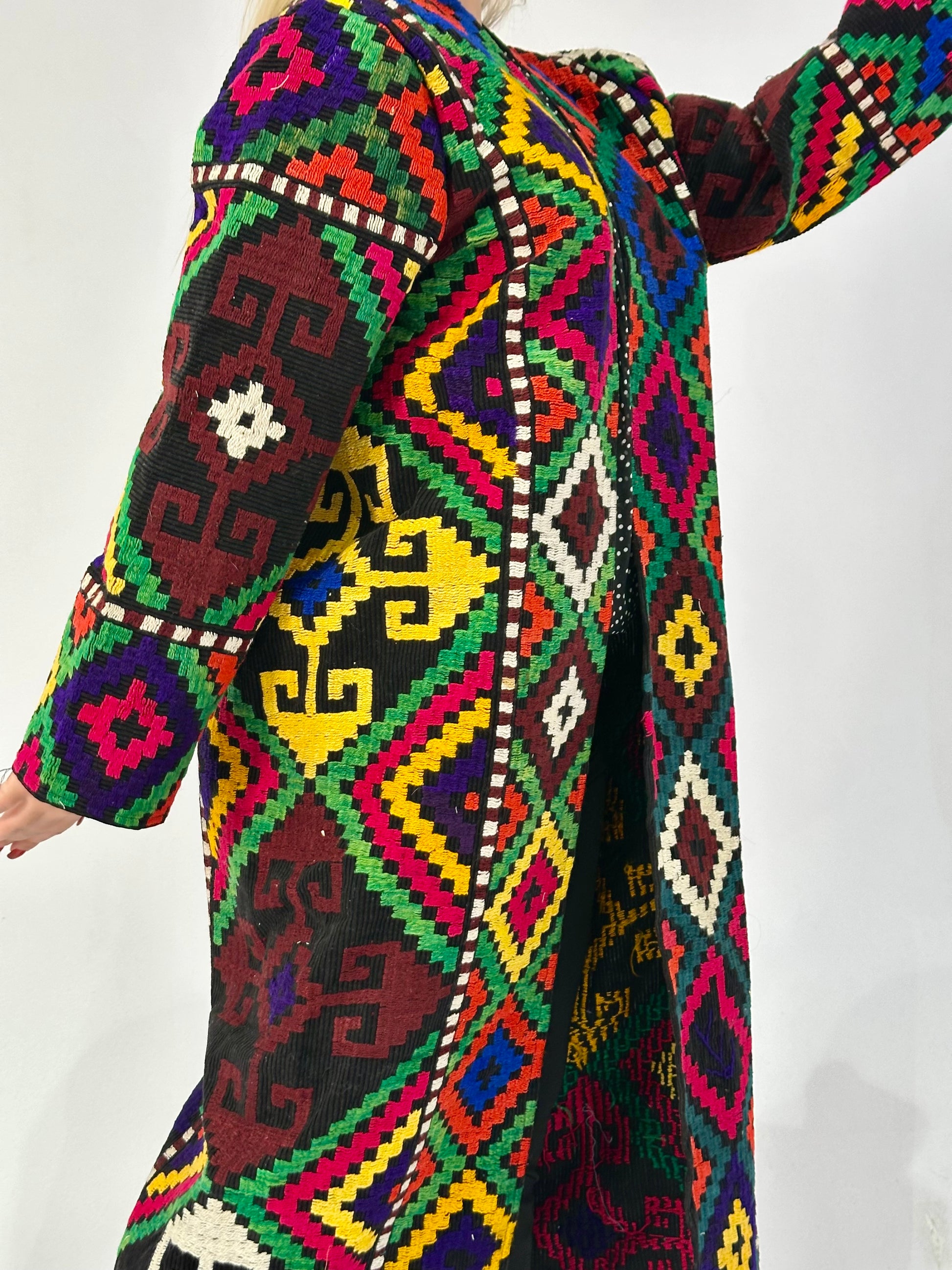 Handmade Upcycled Uzbek Suzani Embroidery Chapan Coat/Robe/Kaftan/Kimono Vintage