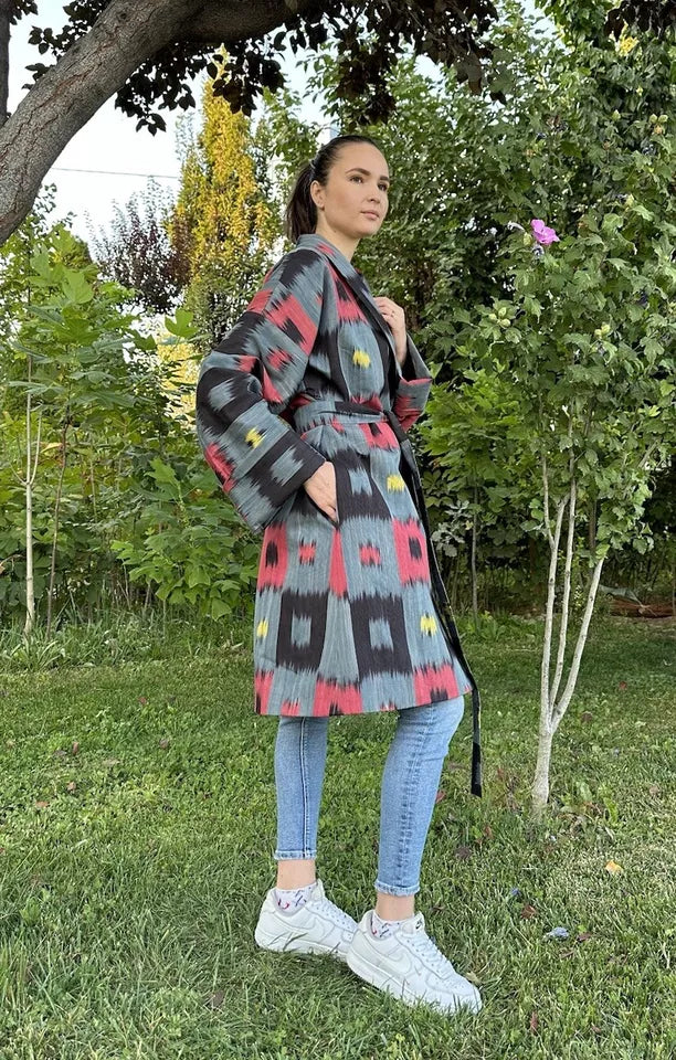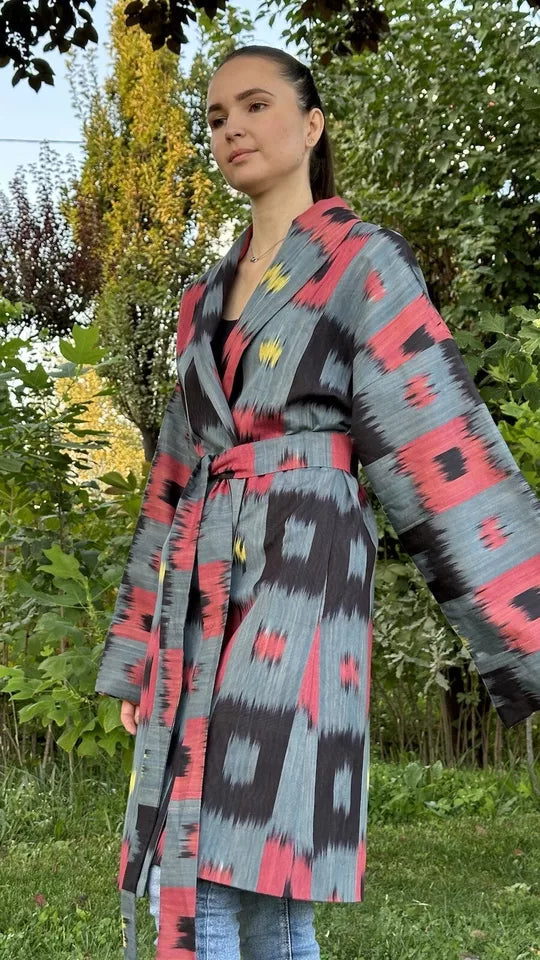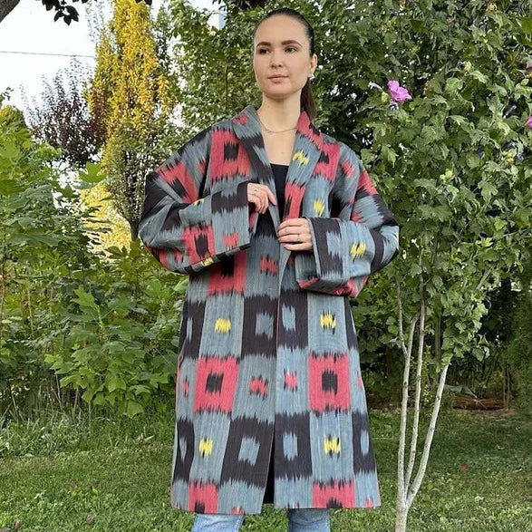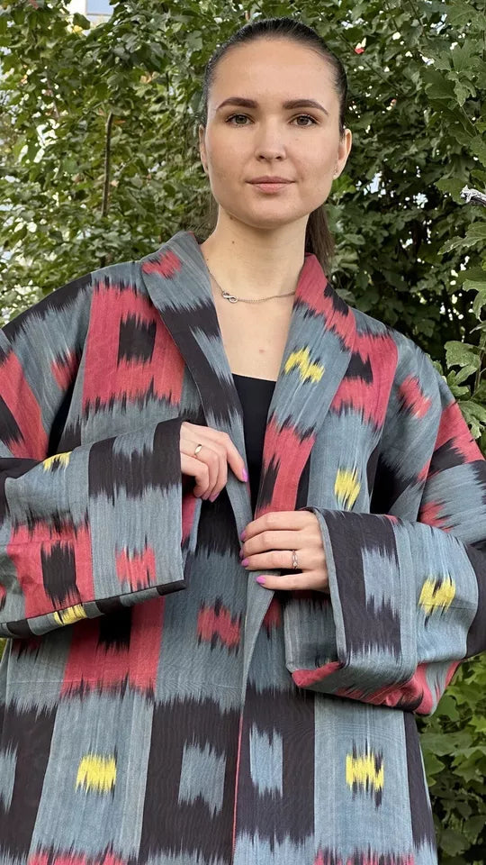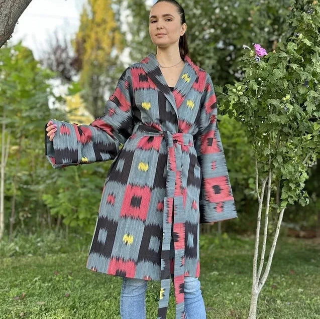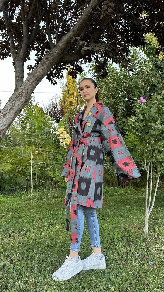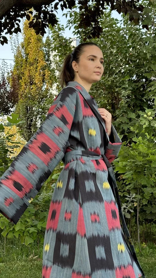 The chapan, a traditional Uzbek robe, carries centuries of heritage within its flowing silhouette. Once exclusively worn by men, today the chapan has transcended boundaries, becoming a beloved garment for all.